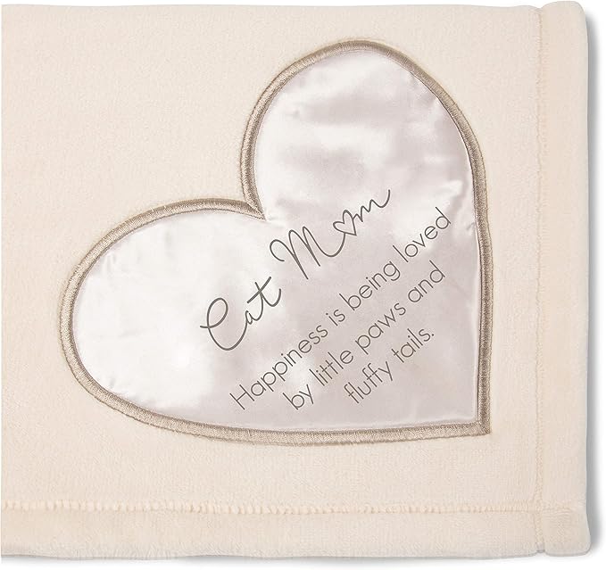 "Cat Mom; Happiness Is Being Loved By Little Paws & Fluffy Tails." text is printed onto an embroidered heart.