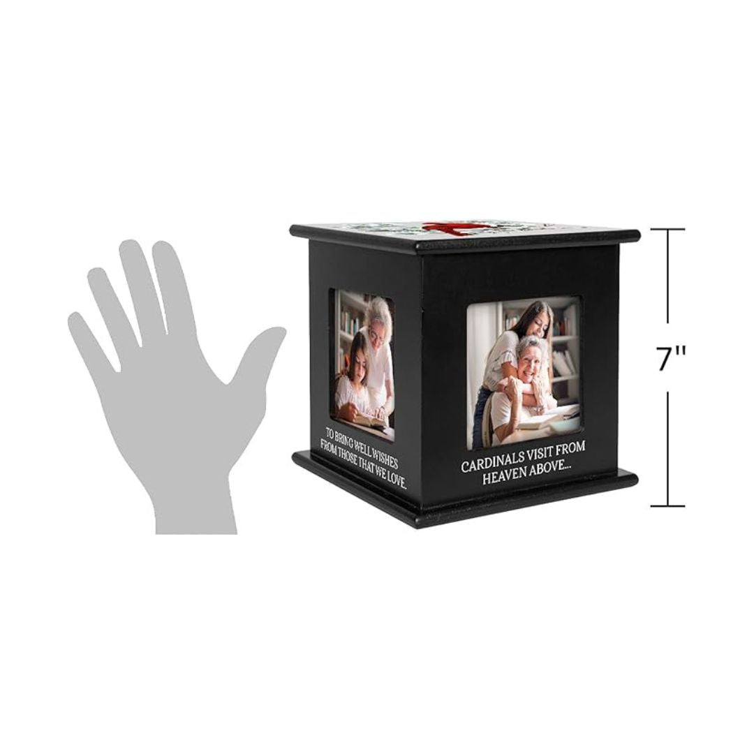 The Memorial Photo Cube is a heartfelt tribute designed to honor the lives of our dearly departed. Crafted with attention to detail, this elegant photo cube beautifully holds cherished photographs, serving as both a meaningful decorative accent and a lasting reminder of precious memories. It provides a special way to keep loved ones close, offering comfort and reflection with every glance.