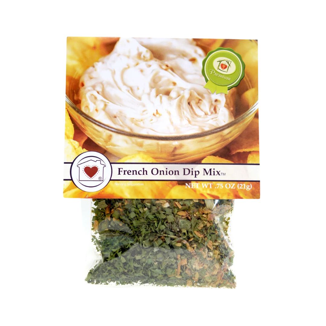 This mix is a special blend of onions and herbs coming together to give a hearty onion flavor. We believe it will become your new favourite chip dip, better than any of the ones you buy at the store. It tastes great with potato chips, pretzels, or vegetables.