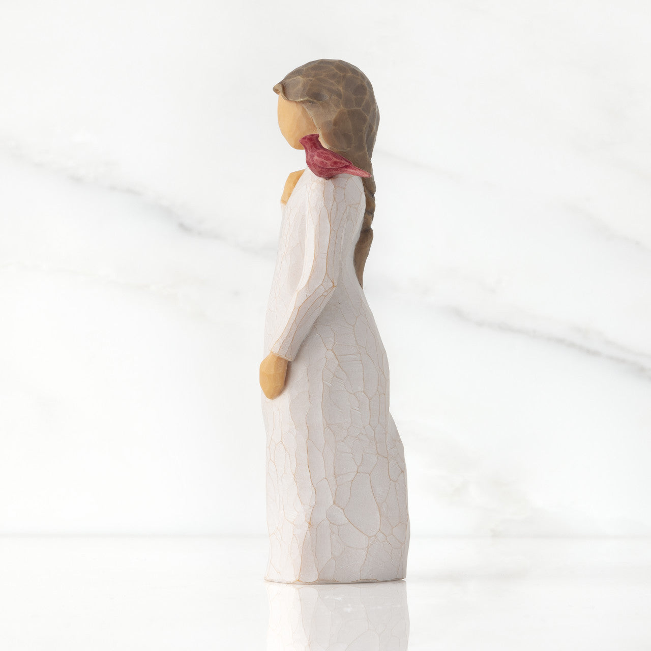 A gift of comfort and healing for one who has lost, or is very far from, a loved one. A reminder that those we love are always with us, in our memories and in our hearts. A red cardinal visits this figure as a small uplifting symbol of remembrance.