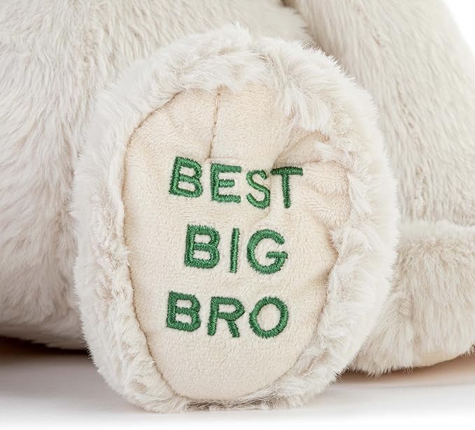 Crafted from soft polyester fiber, this plush dog is machine washable (cold) and should be air-dried for easy care. With the heartfelt sentiment: "Hello big bro! I am getting the best big brother in the world! I am so lucky. You'll always be there to show me the way, teach me the right thing to do, and lend a helping hand. Best Big Bro," it’s a thoughtful and meaningful present for the new big brother.