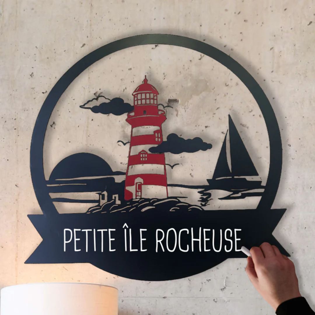 This striking metal wall art piece features a bold red lighthouse design, perfect for adding a nautical touch to any space. Personalize it however you like using chalk, paint, or metallic permanent markers to make it uniquely yours.