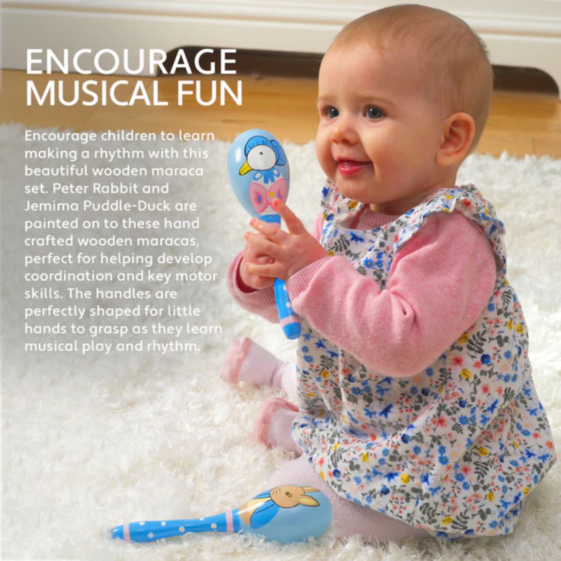 This Peter Rabbit maraca set, painted in bright colours, comes beautifully boxed. It’s a delightful way for kids to make music with this classic and fun instrument.
