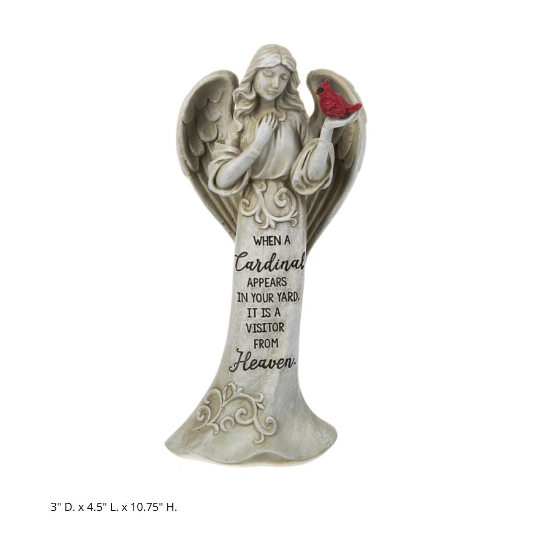 This graceful angel figurine offers comfort and hope with the touching message: “When a cardinal appears in your yard, it is a visitor from Heaven.”
