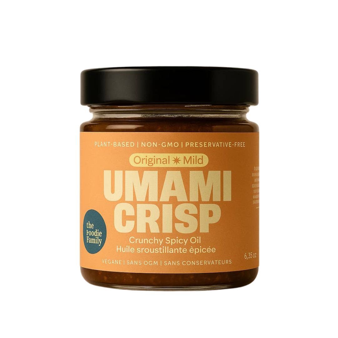 Turn up the flavour with Umami Crisp - a bold blend of heat, crunch, and savoury goodness. Made in small batches by The Foodie Family in Montreal, this crispy chili oil is crafted with plant-based, non-GMO, and preservative-free ingredients you can feel good about.